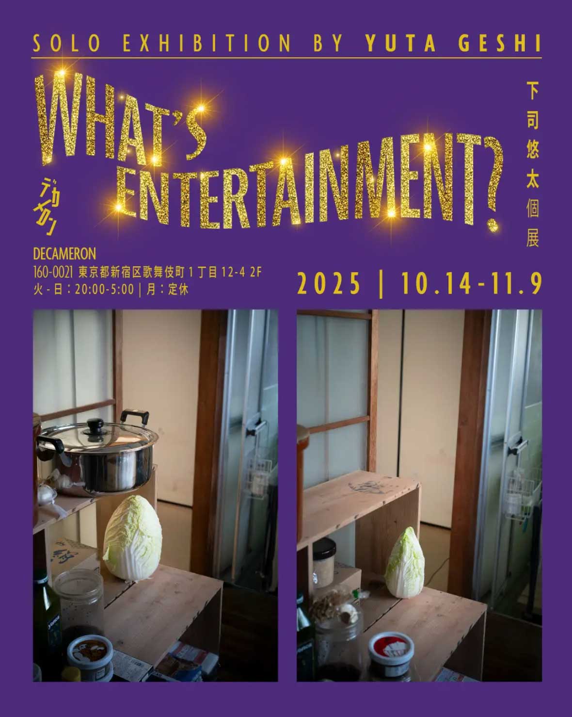 2025年10月14日より、新宿・歌舞伎町のアートスペース「デカメロン」にて、下司悠太(げし・ゆうた)による個展「Whatʼs Entertainment?」を開催いたします。